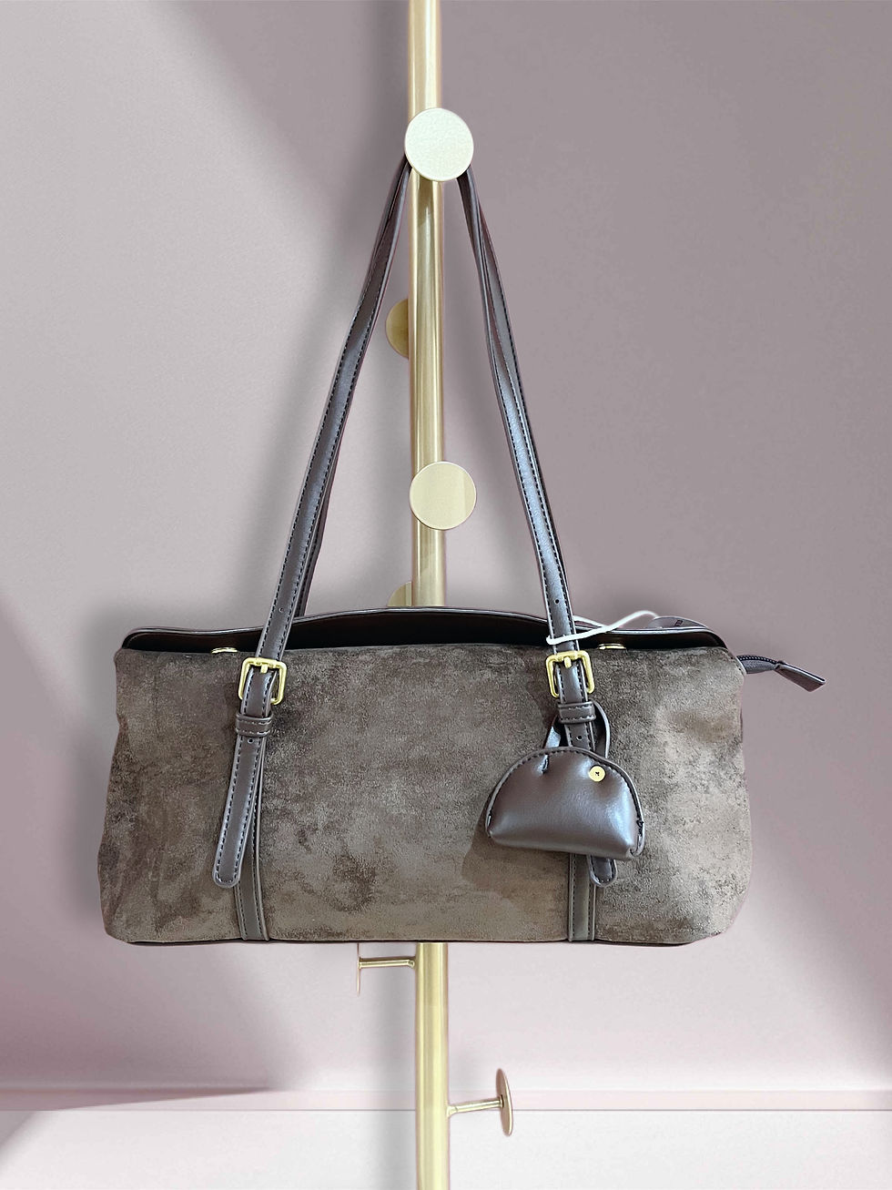 Τσάντα ώμου, με πλεκτή ύφανση σε λουστρίνι δερματίνη, με ιδιαίτερη λεπτομέρεια από χρυσό μεταλλικό χερούλι.